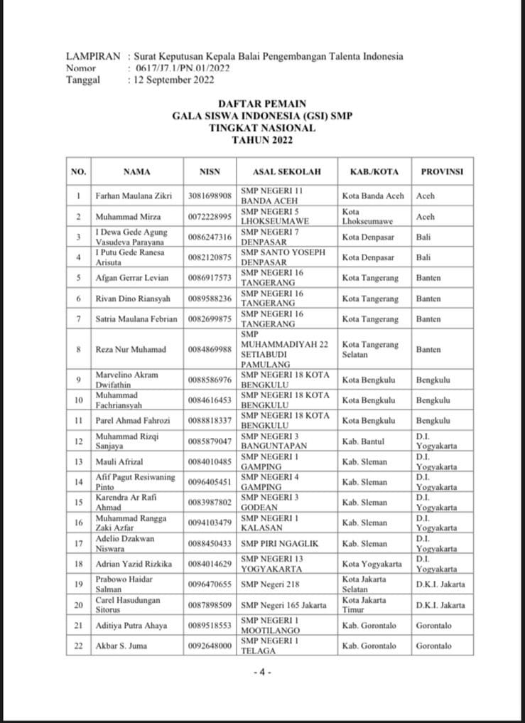 Banda Aceh, Sesuai dengan surat keputusan Kepala Balai Pengembangan Talenta Indonesia Sekertariat Jendral Kementrian Pendidikan, Kebudayaan, Riset, Dan Teknologi tanggal 12 September 2022, terpilihlah salah satu siswa SMP Negeri 11 Kota Banda Aceh Farhan Maulana Zikri sebagai salah satu perwakilan dari Provinsi Aceh, setelah melalui tiga kali seleksi ketat yang diadakan oleh Dinas pendidikan Kota Banda Aceh.